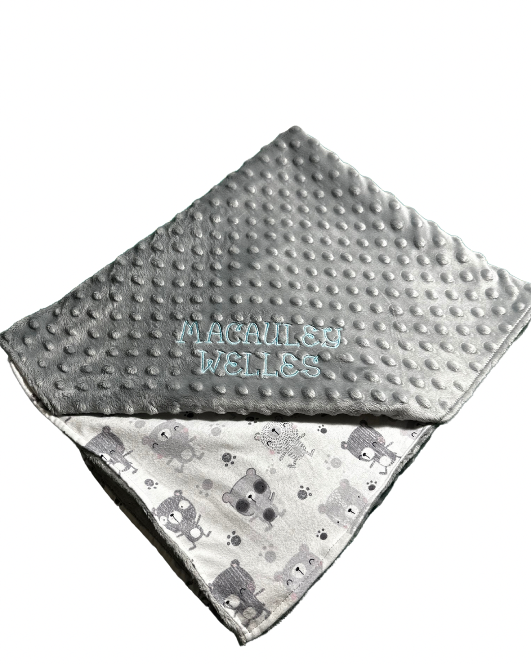 Upon checkout, you will be sent fabric samples to choose from and font/name design to create your custom blanket.